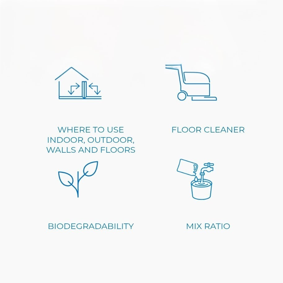 A concentrated neutral cleaner suitable for the everyday cleaning of both treated and untreated surfaces, with CO2 fully offset in the entire life cycle.