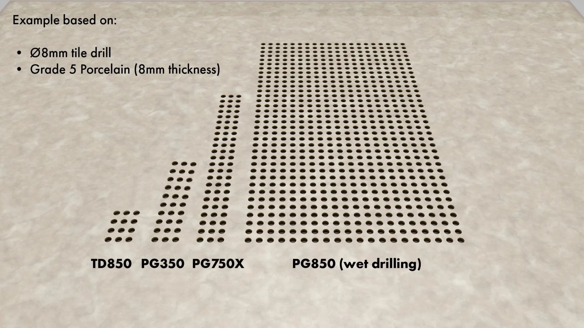 Perfect for drilling all tiles, hardness 5. Compatible with all drills, professional drills, corded and cordless. Drills 500-700 Holes ca. 27 sec. per Hole.