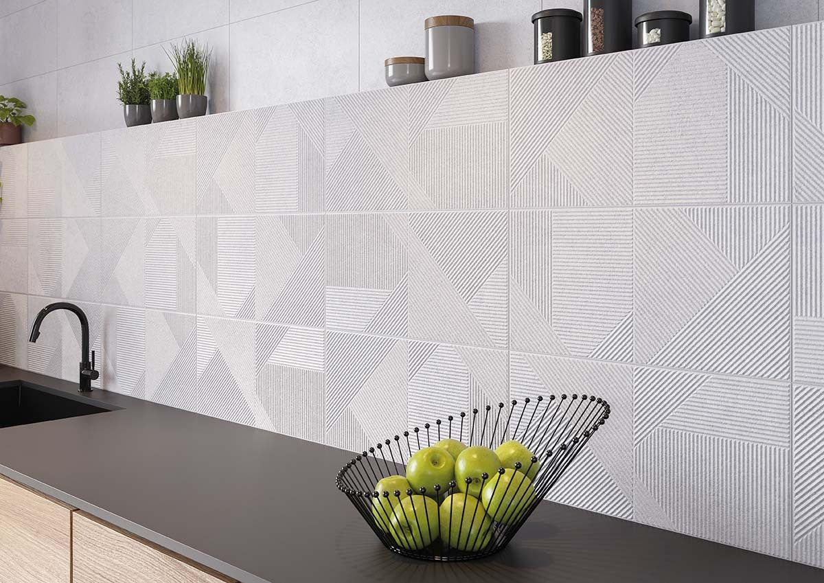 Crafted to complement the simplicity of the plain Rhyme White tile, this décor option introduces bold patterning without overwhelming the space. Its structured geometry delivers a contemporary edge, making it ideal for accent walls, backsplashes, or statement zones. Stylish yet versatile, Rhyme White Décor is where minimalism meets creativity.